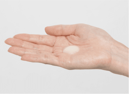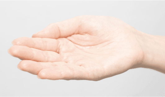 手や顔を濡らさずに使用します。500円玉大程度を手のひらにとります。