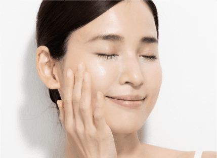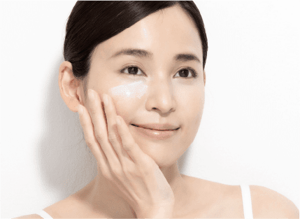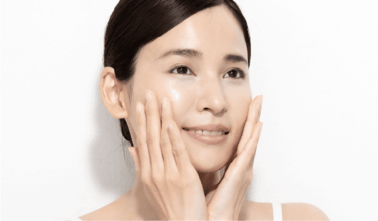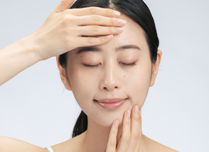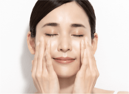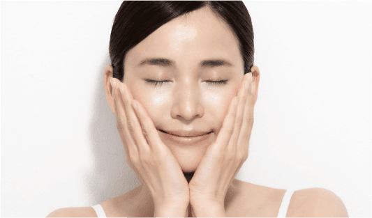顔全体に塗布し、ジェルがやわらかく変化するまで円を描くようになじませます。