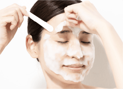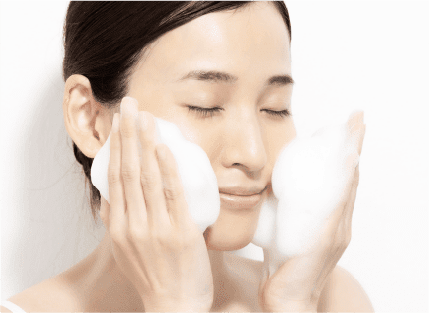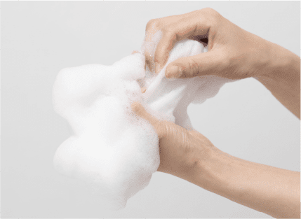 顔全体に馴染ませ、やさしく包み込むように洗います。